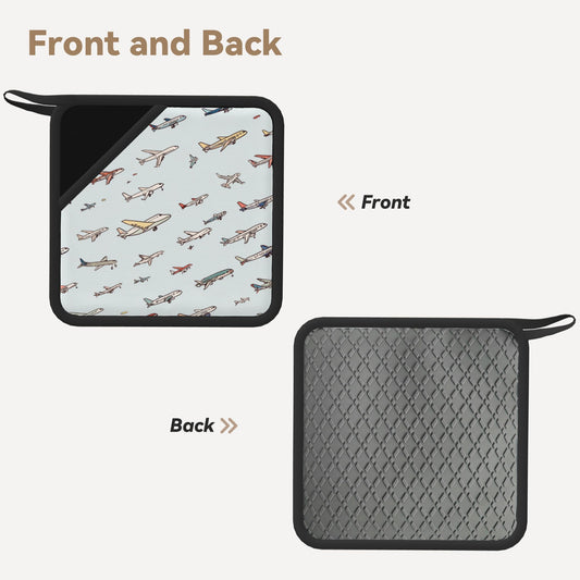 Set of 2 Square Silicone Heat-Resistant Mats 18×18cm – Airplane Design Kitchen Pads