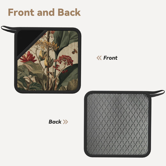 Set of 2 Square Silicone Heat-Resistant Mats 18×18cm – Botanical Art Design Kitchen & Dining Table Pads