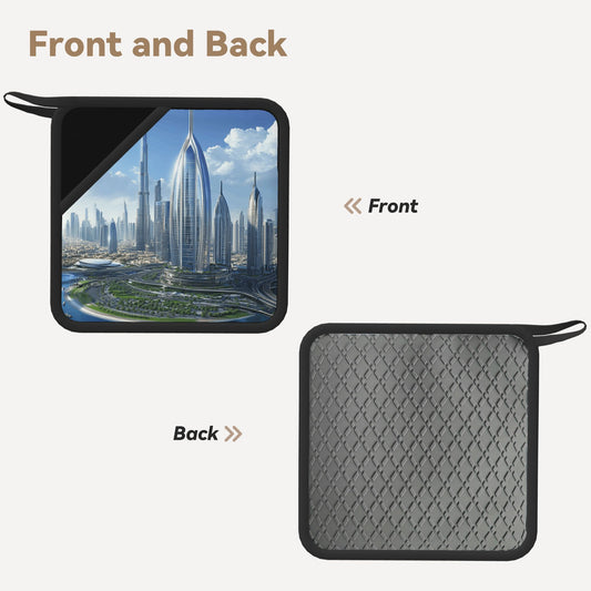 Set of 2 Square Silicone Heat-Resistant Mats 18×18cm – City Skyline Design Kitchen Pads