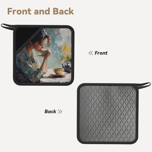 Set of 2 Square Silicone Heat-Resistant Mats 18×18cm – Artistic Oil Painting Woman Design