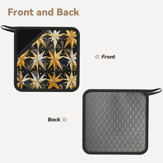 Set of 2 Square Silicone Heat-Resistant Mats 18×18cm – Gold & Silver Star Art Design Kitchen & Dining Pads