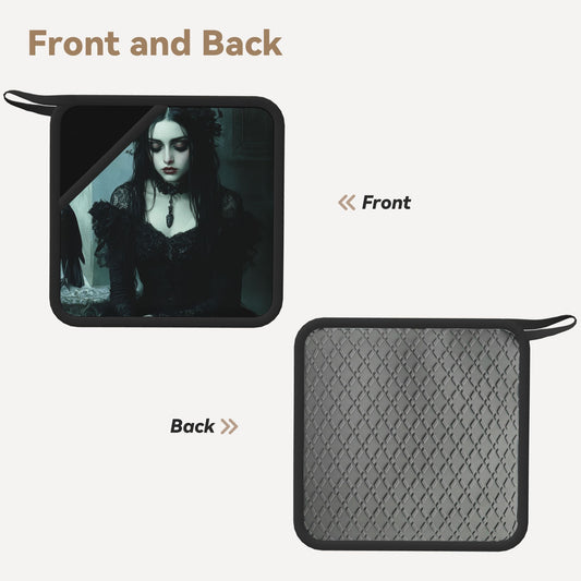 Set of 2 Square Silicone Heat-Resistant Mats 18×18cm – Gothic Art Style Woman Design