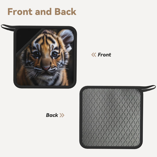 Set of 2 Square Silicone Heat-Resistant Mats 18×18cm – Tiger Art Design Kitchen & Table Pads