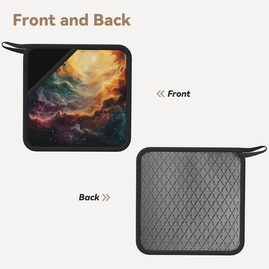 Set of 2 Square Silicone Heat-Resistant Mats 18×18cm – Galaxy Nebula Art Design Kitchen & Dining Pads