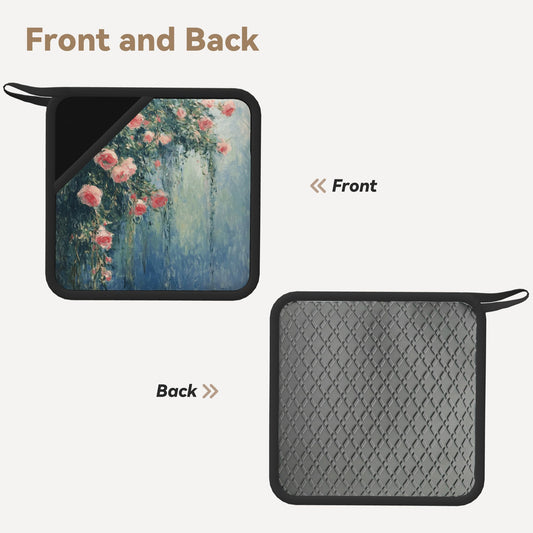 Set of 2 Square Silicone Heat-Resistant Mats 18×18cm – Oil Painting Floral Art Design Kitchen Pads