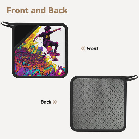 Set of 2 Square Silicone Heat-Resistant Mats 18×18cm – Skateboard Street Art Design Kitchen Pads